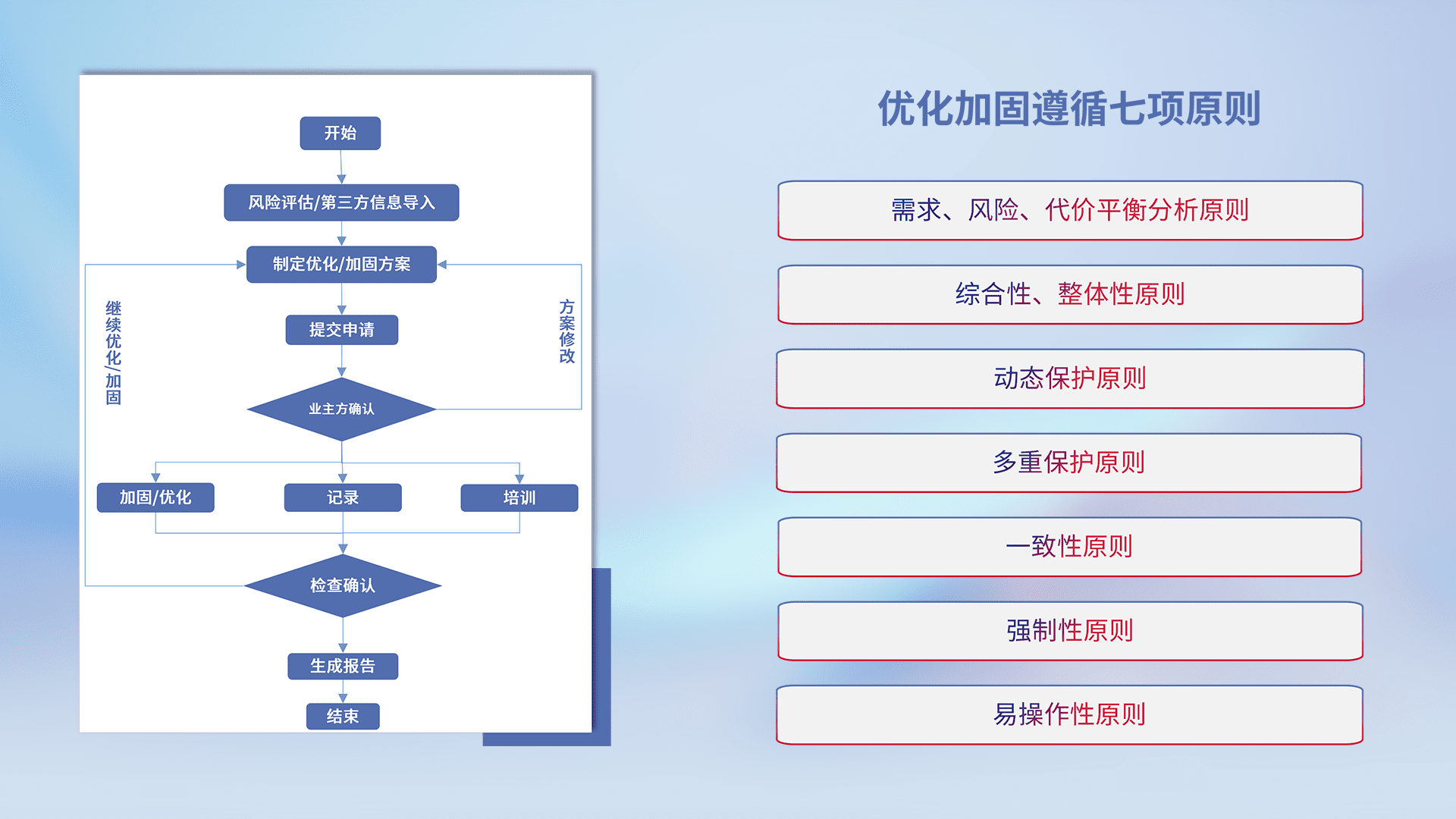 最大程度利用现有资产,,,,对评估发现的问题进行封堵与整改,,,,防止漏洞被利用,,,,提升整体网络安全性,,为客户带来高标准的优化加固服务。。